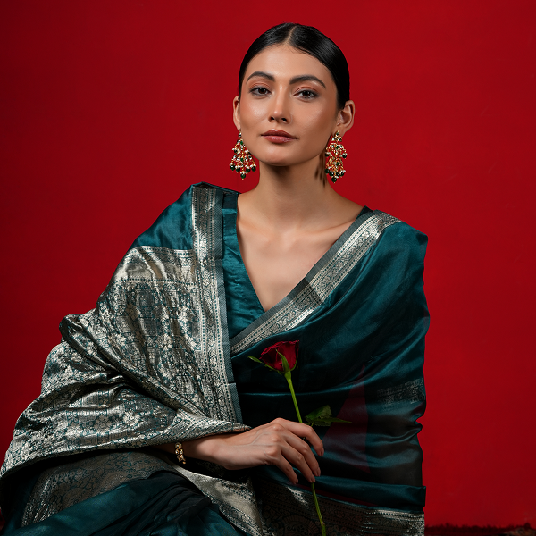 Meher Bagh draws inspiration from the royal gardens of old where emerald leaves glistened under soft sunlight and every bloom whispered grace. Handcrafted in 24kt gold plated, these earrings feature a cascading floral silhouette set with green stones, luminous Kundan, and delicate pearls. A poetic blend of heritage and nature, Meher Bagh celebrates timeless artistry designed for the woman who carries the calm of nature and the aura of royalty.